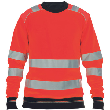 Popis: pánská HI-VIS mikina s kulatým průkrčníkem z počesaného výplňku směsi polyesteru a bavlny; kontrastní proužky v nápletech rukávů a spodním lemu; dvojice reflexních pruhů po obvodu pasu a rukávů a přes ramena; dekorativní prošití v HI-VIS barvě.