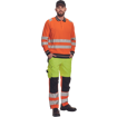 Popis: pánská HI-VIS mikina s límečkem z počesaného výplňku směsi polyesteru a bavlny; propínací léga na 3 knoflíky; kontrastní proužky v nápletech rukávů a spodním lemu; dvojice reflexních pruhů po obvodu pasu a rukávů a přes ramena; dekorativní prošití v HI-VIS barvě.