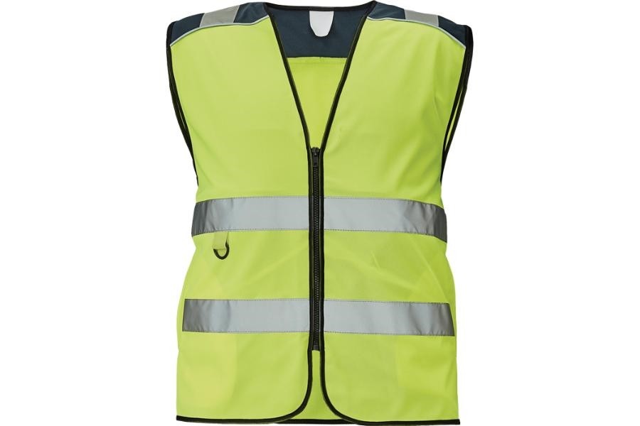 Popis: hi-vis vesta se 2 reflexními pruhy; kontrastní sedlo v oblasti ramen lemované reflexní paspulkou; zapínání na zip; 2 postranní lištové kapsy na zip