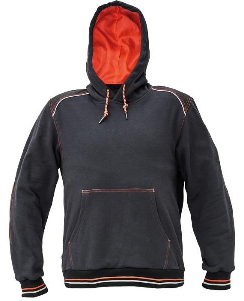 Popis: pánská mikina s kapucí a klokaní kapsou ze směsového počesaného úpletu bavlny a polyesteru; zesílená oblast ramen a loktů; reflexní paspulka lemující sedlo a lištové kapsy; dvojitá kapuce; dekorativní prošití; pružné náplety na rukávech a spodním obvodu