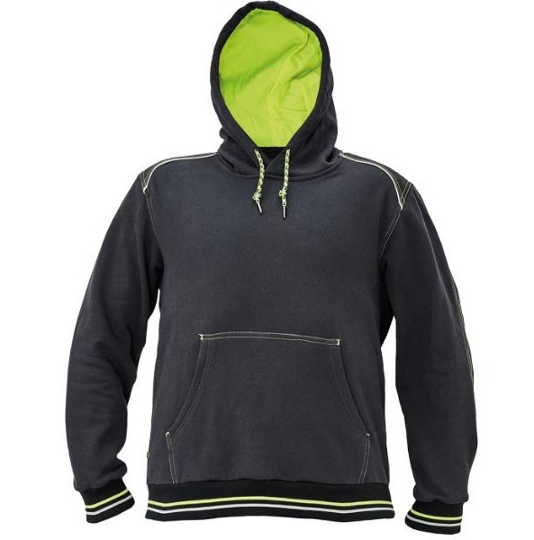 Popis: pánská mikina s kapucí a klokaní kapsou ze směsového počesaného úpletu bavlny a polyesteru; zesílená oblast ramen a loktů; reflexní paspulka lemující sedlo a lištové kapsy; dvojitá kapuce; dekorativní prošití; pružné náplety na rukávech a spodním obvodu