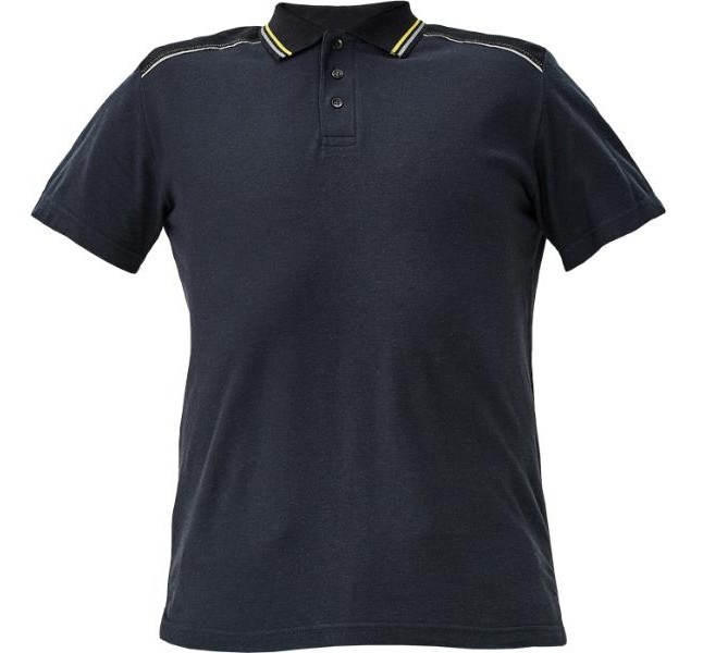 Popis: pánská polokošile s krátkým rukávem ze směsi bavlny a polyesteru v úpletu pique - sedlo v kontrastní černé barvě lemované reflexní paspulkou; propínací léga na 3 knoflíky; dekorativní prošití v hi-vis barvě; kontrastní proužek v límci