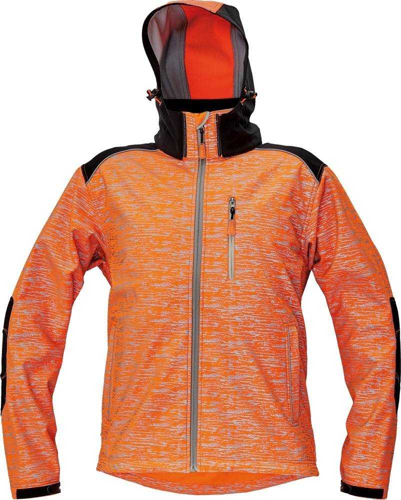 Popis: pánská softshellová bunda s reflektivním dekorativním potiskem na fluorescentním podkladu • zesílená oblast ramen a loktů • 1 náprsní kapsa na zip • 2 postranní lištové kapsy • 2 uzavíratelné vnitřní kapsy • odnímatelná kapuce s efektním uchycením • reflektivní paspulka lemující sedlo a boční kapsy • nastavitelná šíře spodního obvodu a rukávů