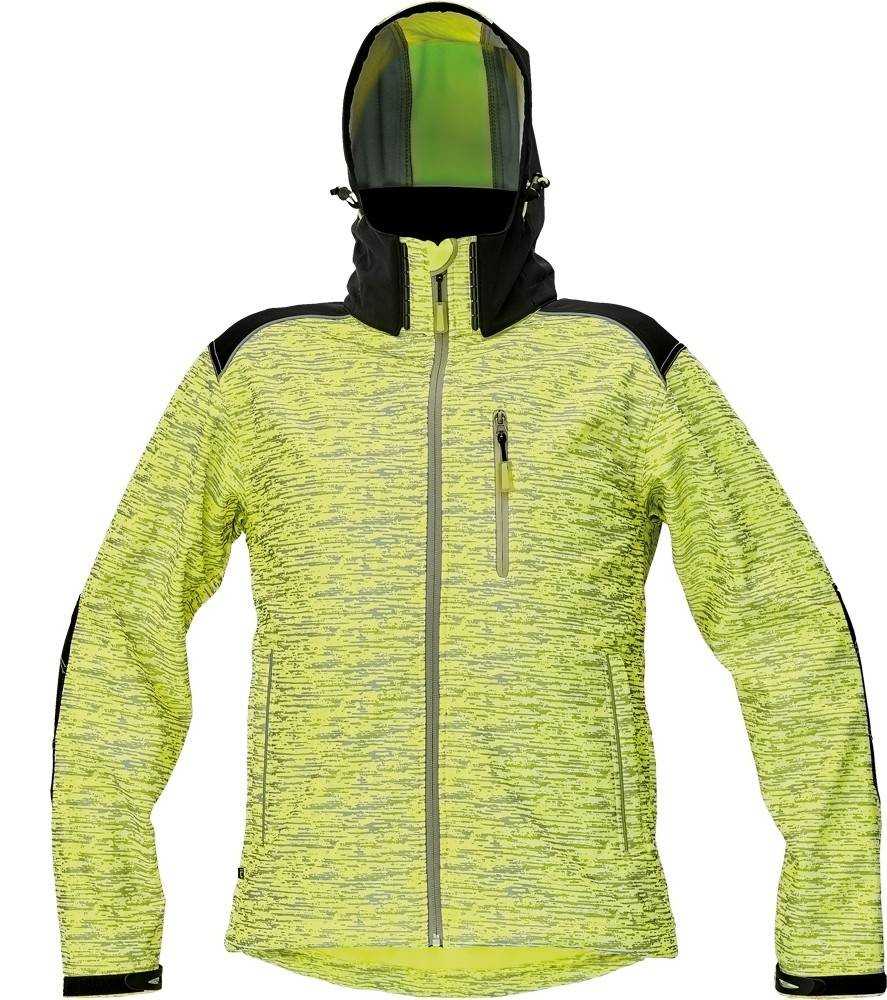 Popis: pánská softshellová bunda s reflektivním dekorativním potiskem na fluorescentním podkladu • zesílená oblast ramen a loktů • 1 náprsní kapsa na zip • 2 postranní lištové kapsy • 2 uzavíratelné vnitřní kapsy • odnímatelná kapuce s efektním uchycením • reflektivní paspulka lemující sedlo a boční kapsy • nastavitelná šíře spodního obvodu a rukávů