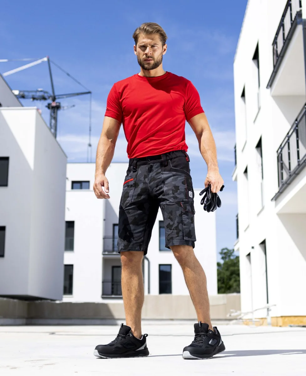 Strečové bavlněné montérkové kraťasy ze speciálního materiálu Amalytton®, který vyniká zvýšenou pevností a hladkým, jemným povrchem. Sníženou gramáž oceníte díky příjemnému pocitu při nošení. V exponovaných partiích je použitý odolný a čtyřsměrně elastický materiál Tabiflex®. Kraťasy mají vysoce funkční ergonomický 3D střih SLIM FIT, který zvýrazňuje siluetu. Jsou vybaveny pružným pasovým límcem spolu se skrytým zadním dvojitým poutkem pro pohodlné usazení opasku, vnitřní protiskluzovou páskou, D kroužkem na karabinu, 2 průhmatovými kapsami, 1 přední zipovou kapsou, 1 přední nářaďovou kapsou se širokým poutkem, na pravé nohavici je umístěna multifunkční kapsa na skládací metr, šroubovák a odlamovací nůž se širokými poutky, na levé nohavici je velká dvojitá kapsa krytá patkou na druk. Zadní díl člení sedlo a 2 kapsy, pravá zadní kapsa je krytá patkou na druk, trojité prošití v namáhaných partiích. Zvýšenou viditelnost uživatele zajišťují reflexní pásky.