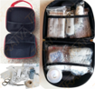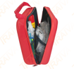 Lékárnička s výbavou, v měkkém kufříku z moderního materiálu EVA, která je potažen textilem. Je odolný vodě, měkký a drží tvar. Vysoká kvalita. Materiál: EVA, potaženo textilií Rozměry: 270 x 230 x 90 mm Seznam zdravotnického materiálu: 2x Kompres gáza sterilní 5 x 5 cm (2ks/bal) 2x Obvaz sterilní 6 cm x 5 m 3x Obvaz hotový s 1 polštářkem 3x Obvaz hotový s 2 polštářky 2x Obinadlo pružné nesterilní 1x Vata buničitá, přířezy 5 x 4 cm (10ks/bal) 1x Náplast – rychloobvaz 6 cm x 1 m 1x Náplast s polštářkem 8 x 4 cm (6ks/bal) 1x Krycí fólie – rouška 20 x 20 cm 1x Izotermická fólie 1x Náplast na cívce 2,5 cm x 5 m 1x Škrtidlo pryžové 2x Trojcípý šátek 1x Chirurgické rukavice 1x Nůžky s kulatými hroty 2x Zavírací špendlíky 1x Pinzeta plastová 1x Karta první pomoci 1x Asept sprej 1x Alpa gel po bodnutí hmyzem 1x Výplach očí 1x Hydrogelová náplast na popáleniny a odřeniny