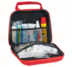 Lékárnička s výbavou, v měkkém kufříku z moderního materiálu EVA, která je potažen textilem. Je odolný vodě, měkký a drží tvar. Materiál: EVA, potaženo textilií Rozměry: 270 x 230 x 90 mm Seznam zdravotnického materiálu: 1x Asept sprej 100 ml 1x Antimetil 1x Aktivní uhlí 1x Alpa gel 20 ml 1x Repelent proti hmyzu 1x Oční výplach STEROWASH – jednoráz. 20ml 2x Kompres gáza sterilní 5 x 5 cm / 2 ks 3x Obvaz hotový s 1 polštářkem 3x Obvaz hotový s 2 polštářky 1x Vata buničitá, přířezy 5 x 4 cm / 10 ks 1x Náplast – rychloobvaz 6 cm x 1 m 1x Náplast s polštářkem 8 x 4 cm / 6 ks 1x Krycí fólie – rouška 20 x 20 cm 1x Izotermická fólie 1x Náplast na cívce 2,5 cm x 5 m 1x Škrtidlo pryžové 2x Trojcípý šátek 1x Chirurgické rukavice 1x Nůžky s kulatými hroty 1x Pinzeta plastová 1x Karta první pomoci