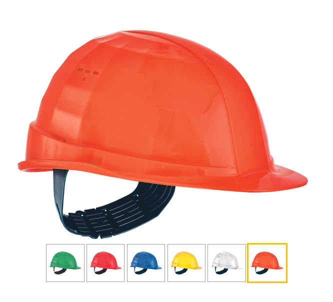 Popis: lehká polyethylénová fasetová skořepina s prodloužením nad zátylkem, zavěšená ve čtyřech bodech na textilních páscích, pro práci do -30 °C.