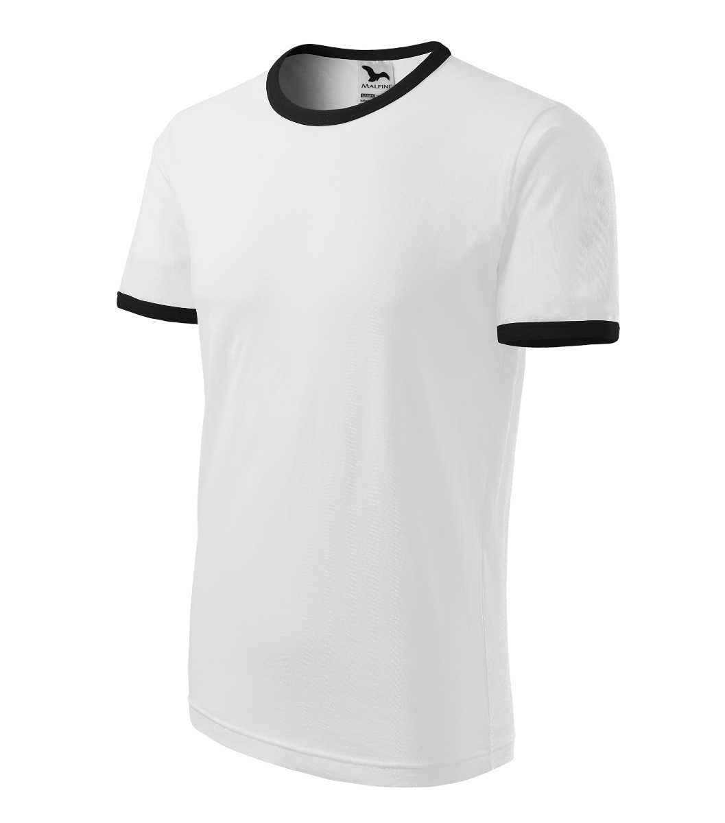 střih s bočními švy, průkrčník a rukávy lemovány žebrovým úpletem 1:1 v kontrastní barvě, zpevnění ramenních švů páskou, bílá/černá, tmavá břidlice/černá, černá/bílá, azurově modrá/bílá, žlutá/černá, červená/tmavá břidlice, limetková/tmavá břidlice