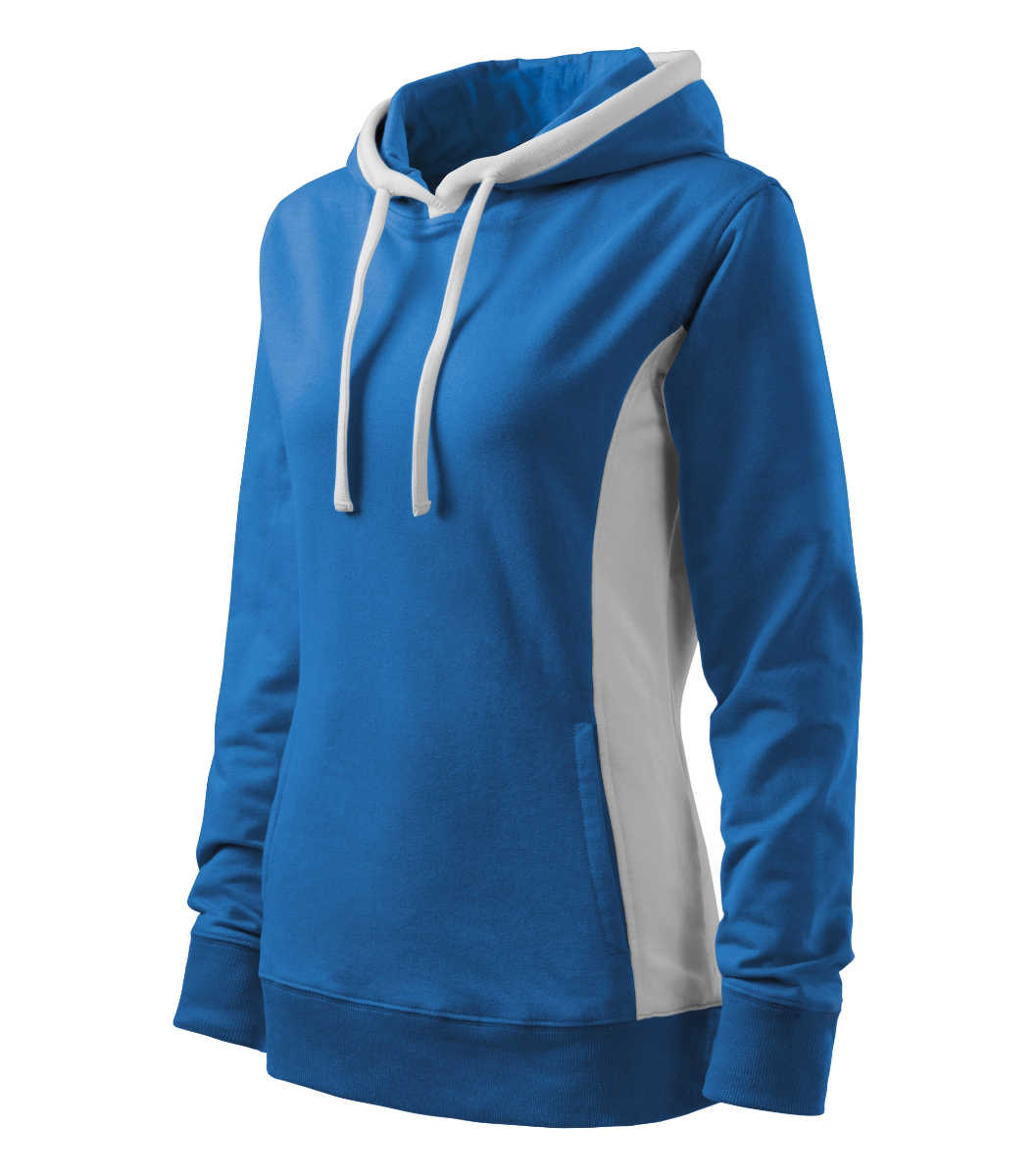 strečový materiál udržující stálost tvaru, střih tvarovaný bočními díly, kapuce s podšívkou, na stažení šňůrkou, lištové kapsy ve stylu klokanky, dolní lem, manžety a lem kapuce z žebrového úpletu 2:2 s 5 % elastanu, kontrastní prvky (vyjma barev BB a WW), vnitřní strana nepočesaná