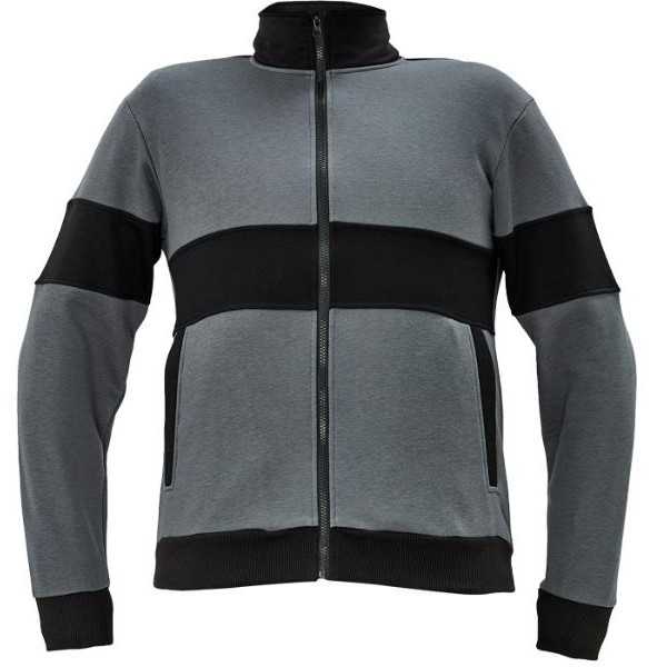 Popis: pánská celopropínací mikina se stojáčkem z nepočesaného výplňku směsi bavlny a polyesteru; 2 postranní lištové kapsy s kontrastním lemováním, elastické manžety a spodní okraj mikiny z ribového úpletu; kontrastní část na hrudníku a horní části rukávů