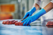 Profesionální rukavice MERCATOR gogrip long byly vyvinuty tak, aby chránily ruce při práci v kluzkých, vlhkých a mokrých podmínkách. Vnější povrch 3D diamantové textury zlepšuje úchop a jistotu pohybu a vnitřek rukavice díky obrácené 3D textuře zajišťuje cirkulaci vzduchu a zabraňuje pocení rukou. Díky dlouhé manžetě (minimálně 30 cm) chrání rukavice ruce, zápěstí a část předloktí proti kontaktu s nečistotami a okolními látkami.Doporučení:Rukavice MERCATOR gogrip long se osvědčí především při zpracování potravin čili tam, kde jsou ruce vystaveny práci v mastném, vlhkém a mokrém prostředí.Dlouhá manžeta představuje dodatečnou bezpečnost a integritu pro ochranu rukou, zápěstí a části předloktí.Rukavice MERCATOR gogrip long najdou také použití při úklidu na mokro, s použitím různých čisticích prostředků.Naše rukavice podrobujeme podrobným testům, abychom potvrdili jejich těsnost a zajistili vaši bezpečnost – rukavice MERCATOR gogrip jsou osobní ochranné prostředky kategorie III, typ B.Vysoká odolnost proti roztržení umožňuje snížit počet použitých rukavic – díky tomu šetříte životní prostředí.MERCATOR gogrip long:Revoluční 3D diamantová texturaVnější diamantová textura zajišťuje pevný úchop i v mastném, vlhkém nebo mokrém prostředíVnitřní texturování umožňuje lepší cirkulaci vzduchu a zabraňuje nadměrnému pocení rukouDlouhá manžeta (30 cm) chrání nejen ruce a zápěstí, ale také část předloktíSchválené pro styk s potravinamiVysoká chemická odolnost proti vybraným chemikáliímMenší spotřeba – větší úsporaDoporučeno zejména pro:Zpracování masa a rybZpracování zeleniny a ovoceZpracování mlékaPekařské a cukrářské zpracováníVýroba nápojůÚklidové služby, úklidMytí a dezinfekce pracovních ploch a strojůHotelový průmysl, HoReCaTyp výrobku: ochrannýKategorie: III type BZnačka: MERCATORMateriál: nitrilTextura: diamantová texturaVnitřní povrch: nepudrovanáAQL: 1,5Tvar: univerzálníManžeta: rolovanýPracovní a ochranné – profesionální délka rukaviclong (above 290 mm)Tloušťka: prodloužené a silnější rukaviceVhodné pro citlivou kůži: ano, nitrilová rukaviceAntistatické: neUvedená cena za 1 box ( 50ks )Záruka: 24 měsíců