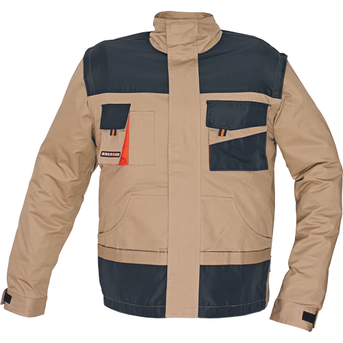 Popis: unikátní monterková blůza EMERTON SUMMER 2 v 1 z odlehčeného materiálu je určena pro letní použití. Bundu lze využít buď jako blůzu s dlouhými rukávy anebo jako lehkou pracovní vestu díky odnímatelným rukávům. Bunda má multifunkční kapsy, kapsu určenou na mobil, u krku se tato bunda zapíná na suchý zip bez vnějšího prošívání. Blůza má odepínací rukávy, zesílená ramena, lokty a také kapsy. Rukávy jsou opatřeny pletenýmim manžetami.