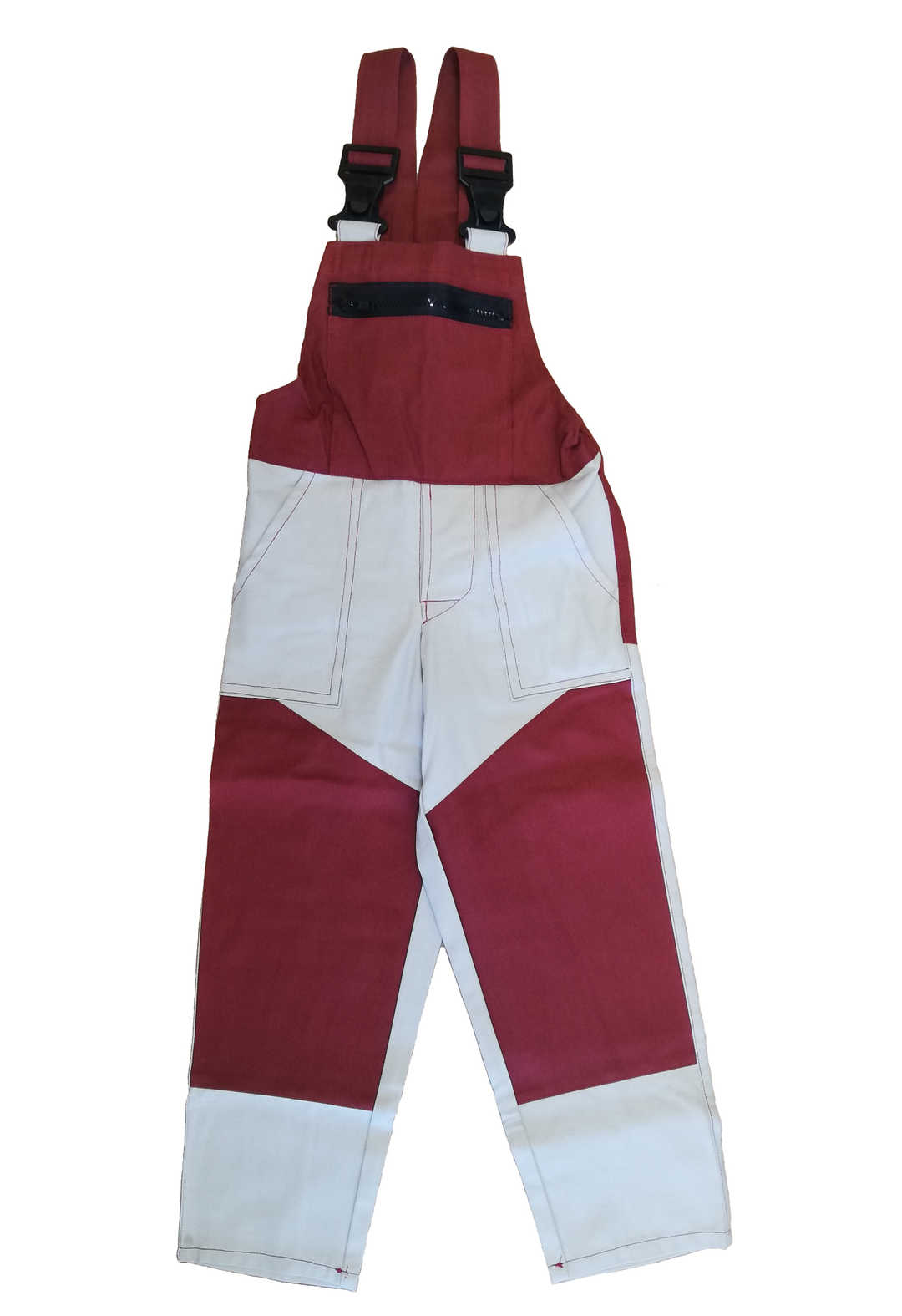Popis: dětské kalhoty s náprsenkou, náprsní kapsy, pas v zadní části do gumy. Ušito v České republice.