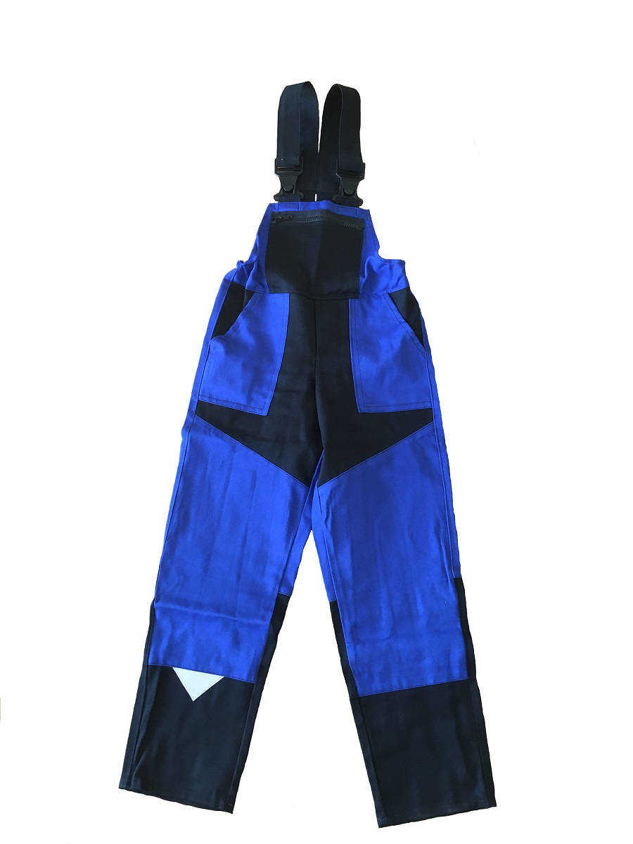 Popis: dětské kalhoty s náprsenkou, náprsní kapsy, pas v zadní části do gumy. Ušito v České republice.