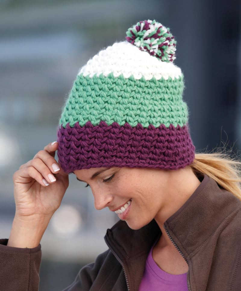 Popis: Vnitřní strana s fleecovým pásem pro příjemný komfort při nošení, s bambulí, hrubý háčkovaný vzhled