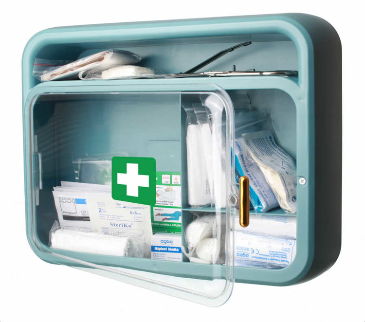 Set kvalitně provedené lékárničky v italském designu, která se hodí do každého interiéru a výbavy Standard, která je vhodná pro obchod, prodejnu, nevýrobní provoz apod.. Připevnění lékárničky na hladké plochy i bez vrtání.Výhodou této lékárničky v italském designu je připevnění na zeď bez vrtání. Balení obsahuje speciální transparentní samolepící držák, který po přitlačení pevně drží na jakémkoli hladkém, bezprašném povrchu. Na obkladačkách, skle, a podobně.Technický popisRozměry: 37,5 x 30 x 10,5 cmVýbava lékárničky - STANDARDTato náplň je obsažená ve všech kompletech označených jako "Výbava Standard". Tato výbava lékárničky je vhodná pro obchod, prodejnu, nevýrobní provoz apod. Veškerý zdravotnický materiál je zabalen v plastových kapsách s popisy. Expirační lhůta je min. 4 roky.Výbava, náplň lékárničky je navržená ve spolupráci s odborníky pro první pomocObsahuje nejpotřebnější prostředky pro rychlou a účinnou záchranu zdraví a života. Zejména v případech, kdy jde o vteřiny nebo minuty, a rychlá záchranná služba nemůže v tak krátkém čase účinně pomoci. Obsahuje také obrázkovou kartu první pomoci, ve které se každý rychle zorientuje jak první pomoc poskytnout. Při poranění velké tepny - pažní, stehenní, krční - lze vykrvácet do 90 vteřin! Technický popis vybavení - náplně lékárničky:Seznam zdravotnického materiálu ve výbavě STANDARD: 5x Desinfekční ubrousek (2 ks/bal) 2x Kompres gáza sterilní 5 x 5 cm (2 ks/bal) 2x Obvaz sterilní 8 cm x 5 m 1x Oční výplach STEROWASH – jednorázový 20 ml 3x Obvaz hotový s 1 polštářkem 3x Obvaz hotový s 2 polštářky 2x Obinadlo pružné nesterilní 1x Vata buničitá, přířezy 5 x 4 cm (10 ks/bal) 1x Náplast – rychloobvaz 6 cm x 1 m 1x Náplast s polštářkem 8 x 4 cm (6 ks/bal) 1x Krycí fólie – rouška 20 x 20 cm 1x Izotermická fólie 1x Náplast na cívce 2,5 cm x 5 m 1x Škrtidlo pryžové 1xTrojcípý šátek 1x Chirurgické rukavice 1x Nůžky s kulatými hroty 1x Pinzeta plastová 1x Karta první pomoci 1x Formulář – kniha úrazůUvedená cena za 1ks.Záruka: 24 měsíců