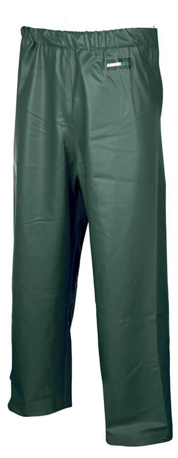 voděodolné kalhoty do pasu, s gumou v pase nastavitelná šířka nohavic na druk voděodolný materiál Plavitex, PVC/polyester, 350 g/m² dvojité podlepení švů umožňuje ochranu proti silnému dešti a větru materiál: 100% polyester, 350 g/m2 norma: EN 343, EN 13688 barva: zelené velikosti: M - XXXL