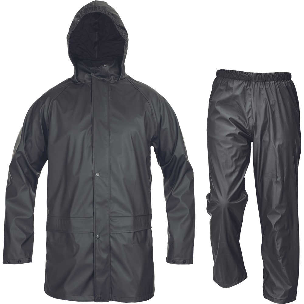 Popis:• nepromokavý a větruodolný komplet bundy a kalhot • ¾ plášť s kapucí v límci • kalhoty s gumou v pase • dvě přední kapsy bundy kryté légami • spodní lem rukávů lze upravit drukem velikost • XL: 1,065 kg Materiál:Svrchní materiál: 100 % polyester, 200 g/m² , Povrstvení: polyuretan , Tloušťka materiálu: 0,5 mmNormy:EN ISO 13688 EN 343 (31X)Vlastnosti:Průmysl: Zemědělství, lesnictví, rybolovVlastnosti oděvů: Voděodolné oděvy, Prodyšné oděvyVodní sloupec: 3000 mmÚdržba:Perte pouze ručně, maximální teplota vody by měla být cca 30 °CNebělte. Nesmí se bělit peroxidovými ani chlorovými přípravkyNesušte v sušičceNežehlete. Při žehlení hrozí nevratné poškozeníChemické čištění zakázánoUvedená cena za 1 ks.Záruka: 24 měsíců
