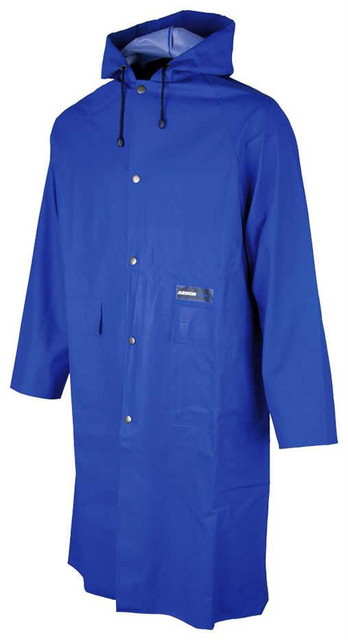 voděodolný plášť s kapucí voděodolný materiál Plavitex, PVC/polyester, 350 g/m² dvojité podlepení švů umožňuje ochranu proti silnému dešti a větru zapínání na druky, dvě kapsy kryté légou nastavitelná šířka rukávů materiál: 100% polyester, 350 g/m2 norma: EN 343, EN 13688 barva: modrá velikosti: M - XXXL