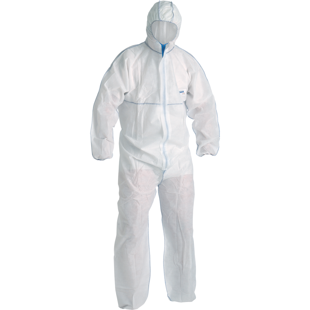 ochranná kombinéza s kapucí, klopou na zipu a gumičkou stahovatelnými rukávy a nohavicemi; je odolná některým chemikáliím; v ochraně proti postřiku kapalnými chemikáliemi patří do kategorie CE III; v ochraně proti průniku pevných částic a ochraně proti aerosolům typu 5; v ochraně proti postřiku kapalnými chemikáliemi typu 6.