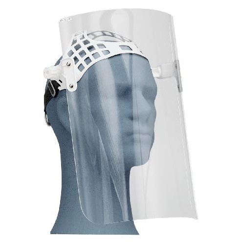 Popis: ochranný štít s náhlavním nosičem, určen k ochraně očí a obličeje proti nárazu pomalu letících částic s dopadovou energií max. 0,56 J, současně chrání dýchací ústrojí před přímím vdechnutím mechanických částic, umožňuje současné použití dioptrických brýlí, nechrání proti postřiku kapalinou.