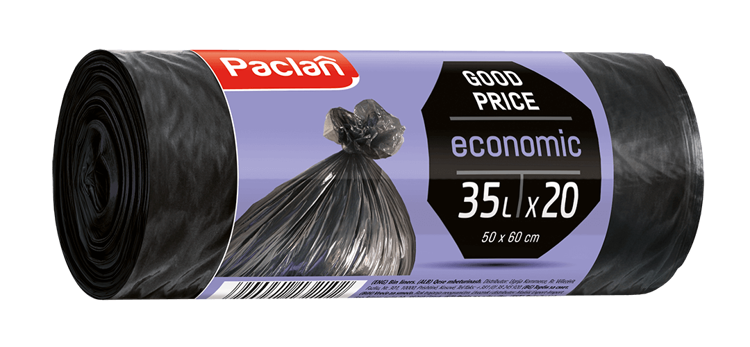 Popis: Paclan pytle na domovní a kancelářský odpad mají objem 20, 35 a 60 litrů. Sáčky jsou dostatečné pevné a menší sáčky o objemu 20 L, 35 L se perfektně hodí do menších kancelářských košů nebo do koše na WC. Sáčky do koše jsou pevné, odolné proti roztržení a diskrétně neprůhledné.