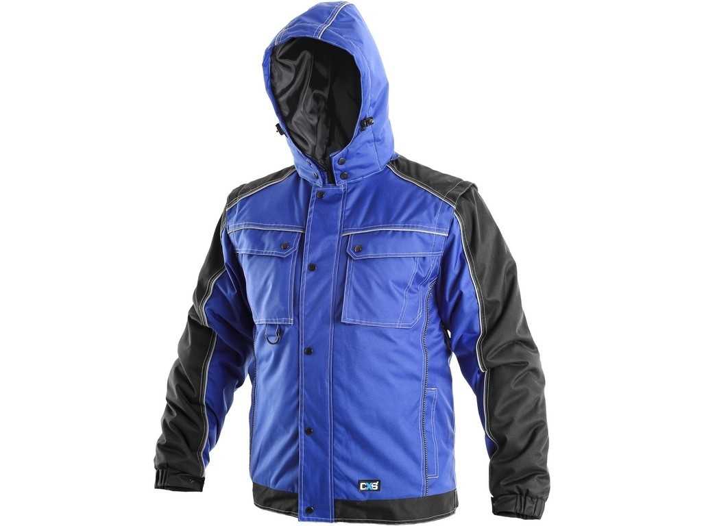 Popis: zateplená bunda 2v1, odepínací kapuce, odepínací rukávy, rukávy a dolní okraj zakončeny regulovatelnou manžetou, lepené švy, vnitřní kapsa, reflexní výpustky, voděodolnost 3 000mm, paropropustnost 3 000g/m2/24 hod