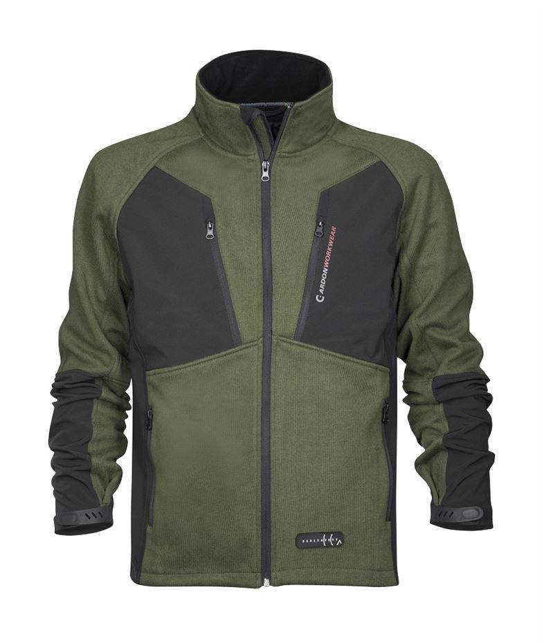 Pánská pletená bunda, kombinace pleteniny a softshellu s voděodolnou úpravou.