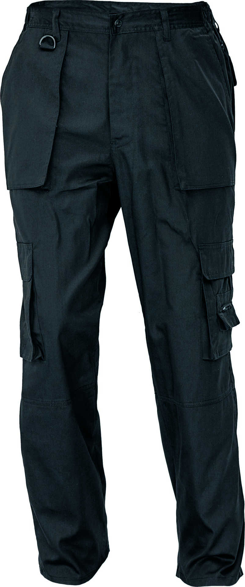Popis: pevné praktické kalhoty s mnoha funkčními kapsami – pocketstyle • v pase na gumu a s poutkami na pásek • multifunkční vakové přední kapsy • D kroužek z plastu