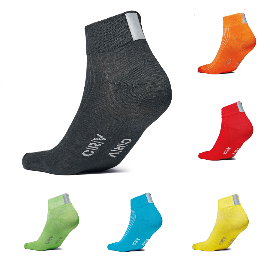 Popis: krátká sportovní ponožka ve výrazných barvách s reflektivním páskem na zadní straně