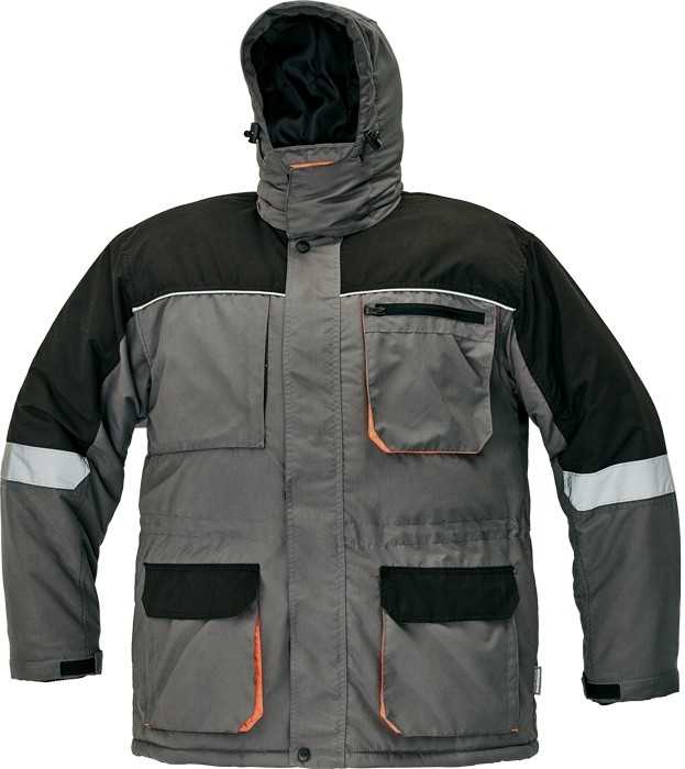 Popis: pracovní zateplená bunda Emerton. nejteplejší skladová zimní bunda • vhodná pro celodenní nošení v náročných klimatických podmínkách (až do -40 °C) • reflexní doplňky • odnímatelná kapuce na zip • multifunkční hluboké kapsy