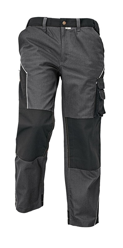 Popis: pánské pracovní kalhoty do pasu, s multifunkční postranní kapsou na nohavici • velké nakládané zadní kapsy a klopou na suchý zip • nákolenní kapsy ze zesíleného materiálu Oxford s možností vložení kolenních výztuh • zpevnění švů trojitým prošitím • znásobené prošití v namáhaných místech v kontrastní barvě • upravitelná délka nohavic • dekorativní paspule z reflektivního materiálu • elastický pas