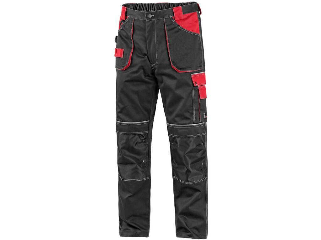 Pánské montérkové kalhoty, pas s poutky na opasek, vzadu do gumy, přední kapsy s poutky na nářadí, multifunkční kapsy na obou stranách, kolena zesílena 600D polyesterem s možností vložení kolenních výztuh, dvě zadní kapsy, jedna na suchý zip, reflexní doplňky.