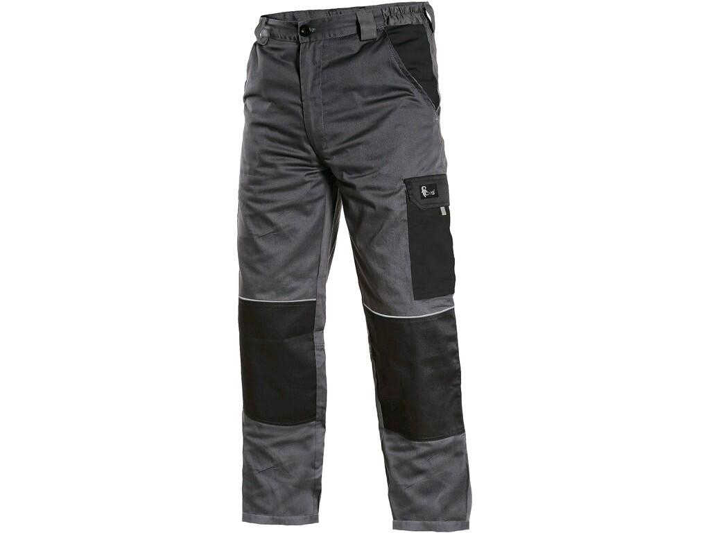 Pánské montérkové kalhoty z lehkého materiálu, pas s poutky na opasek a gumou v bocích, přední klínové kapsy, boční kapsa s klopou, kapsa na skládací/svinovací metr, zdvojená kolena, zadní jednoduchá kapsa, reflexní doplňky. Díky odlehčené gramáži vhodné pro práci nejen v letním období, ale také celoročně ve vytápěných provozech.