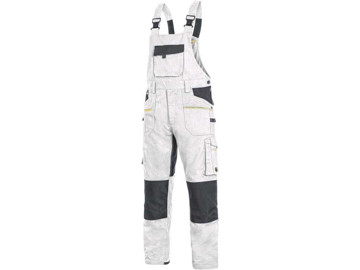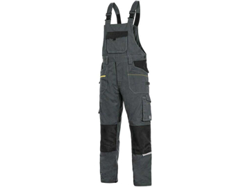 Popis: Pánské montérkové kalhoty s náprsenkou, strečová tkanina umožňující volný pohyb, náprsní kapsa s klopou, pas s poutky na opasek, přední kapsy s kapsou na zip, multifunkční kapsy na obou stranách, kolena zesílena 600D polyesterem s možností vložení kolenních výztuh, dvě zadní kapsy - jedna s klopou, zadní spodní lem nohavice vyztužen 600D polyesterem, šle s gumou vzadu, reflexní doplňky. Kalhoty jsou vybaveny EASY-PROLONG systémem, který umožňuje snadné prodloužení střihu na vyšší postavu uvolněním švu na nohavicích.