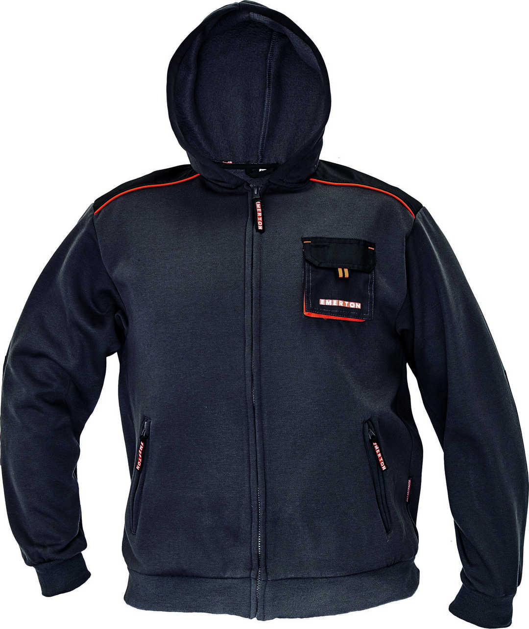 Popis: Pánská mikina s kapucí • mikina s kapucí, celopropínací • vnitřní strana mikiny je počesaná • spodní lem a manžety rukávů z žebrovaného úpletu s příměsí elastanu