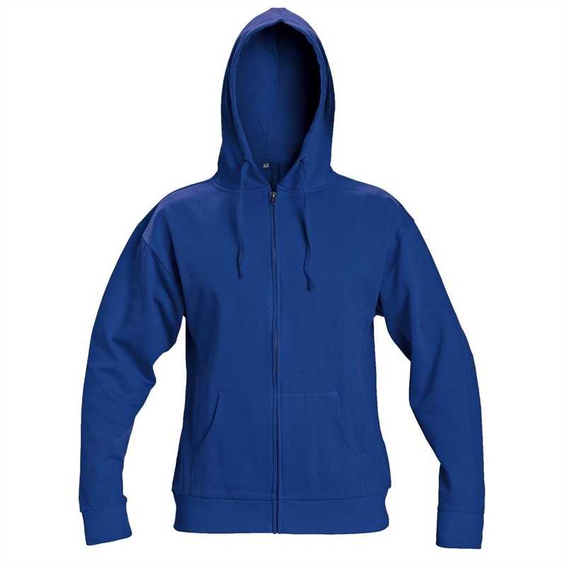 Popis: mikina s kapucí • zatahovatelná kapuce na kulaté tkanice • celopropínací s kovovým zipem • vnitřní strana počesaná • spodní lem a manžety rukávů z žebrového úpletu s příměsím elastanu