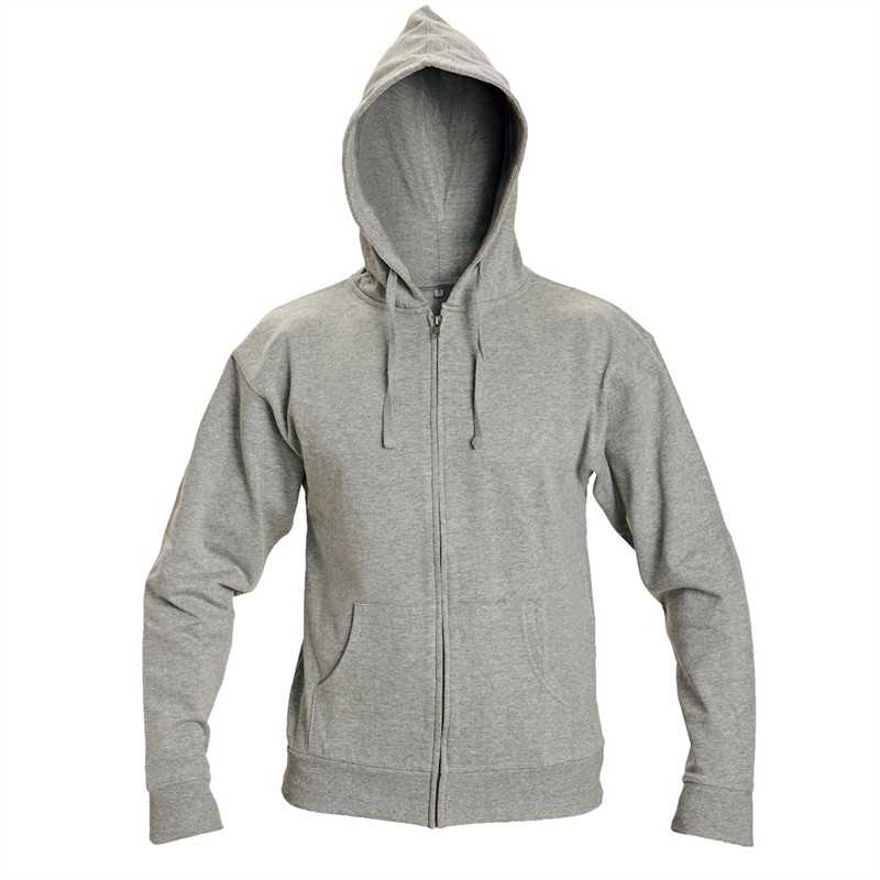 Popis: mikina s kapucí • zatahovatelná kapuce na kulaté tkanice • celopropínací s kovovým zipem • vnitřní strana počesaná • spodní lem a manžety rukávů z žebrového úpletu s příměsím elastanu