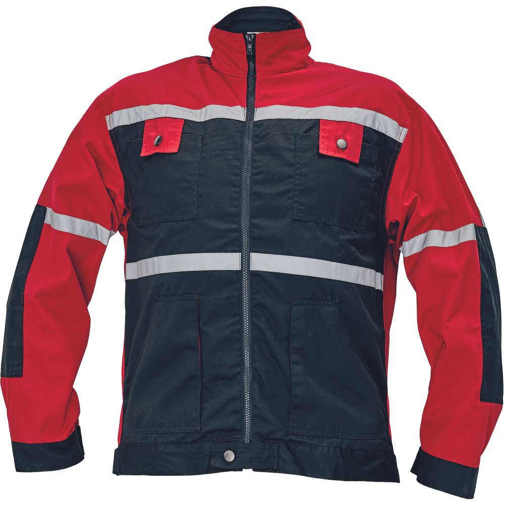 Popis: olejivzdorná a voděodolná impregnace, stojáčkový límec, zapínání na zip a kovový knoflík, zesílené lokty na rukávech, manžeta s knoflíkem, 2 našité náprsní kapsy s úzkými klopami a kovový knoflík, vzadu stahovací pásek, reflexní doplňky, 2,5 cm široké pásy