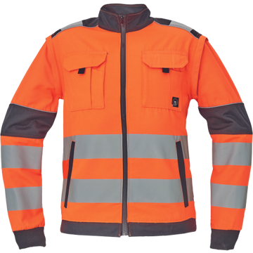 Pánská HI-VIS pracovní bunda se zapínáním na zip; odepínatelné rukávy.