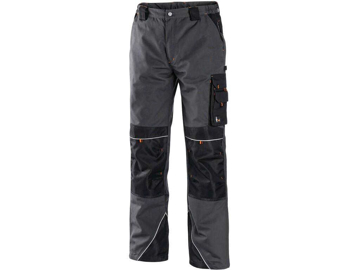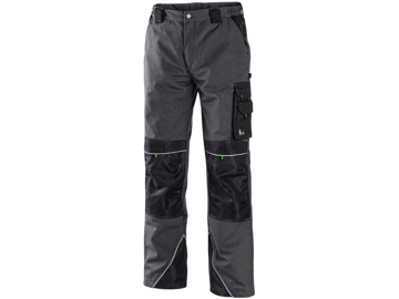 Pánské zahradníky, zesílená kolena s možností vložení kolenních výztuh, pevný pas s poutky na opasek, přední klínové kapsy, zadní kapsy s klopami, boční multifunkční kapsy, náprsenka s kapsou, reflexní doplňky.