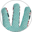 Rukavice šité z barevné bavlněné tkaniny, s PVC terčíky v dlani a na prstech.