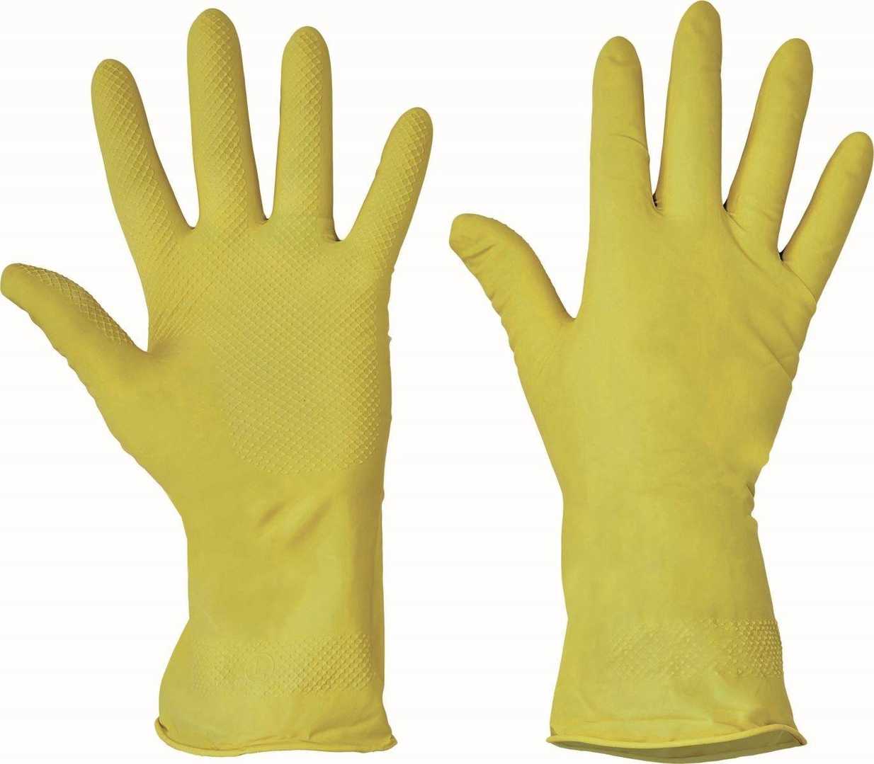 Popis: latexové rukavice s protiskluzovou úpravou v dlani a na prstech.
