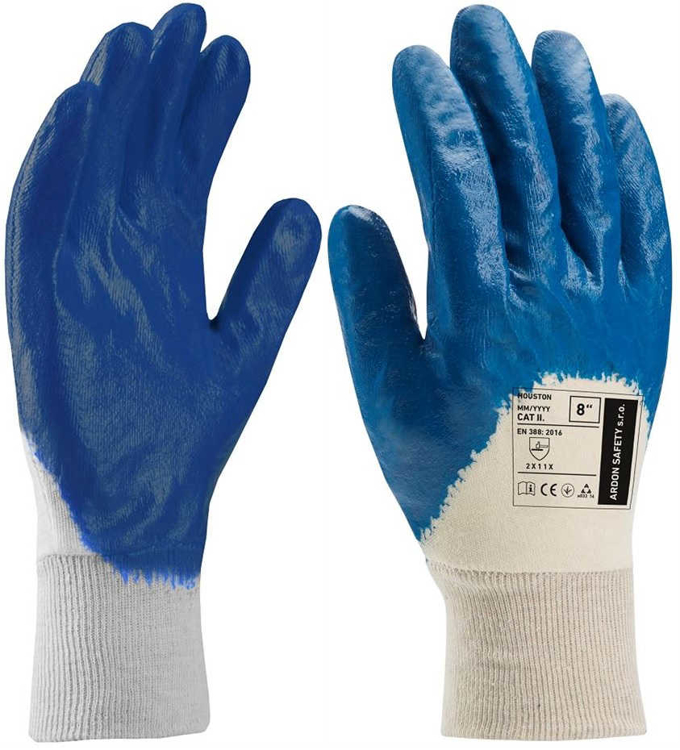 Rukavice s dlaněmi a prsty povrstvenými nitrilovou pěnou.