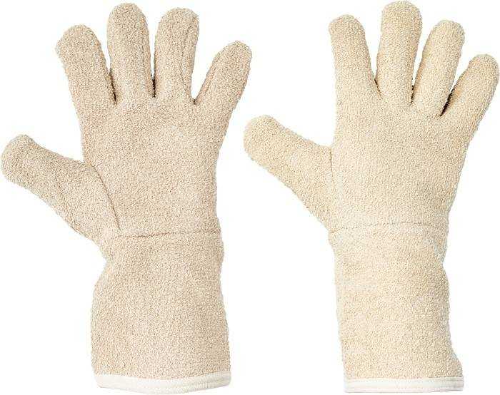 Rukavice s manžetou šité ze silné froté bavlny, v celkové délce 35 cm.