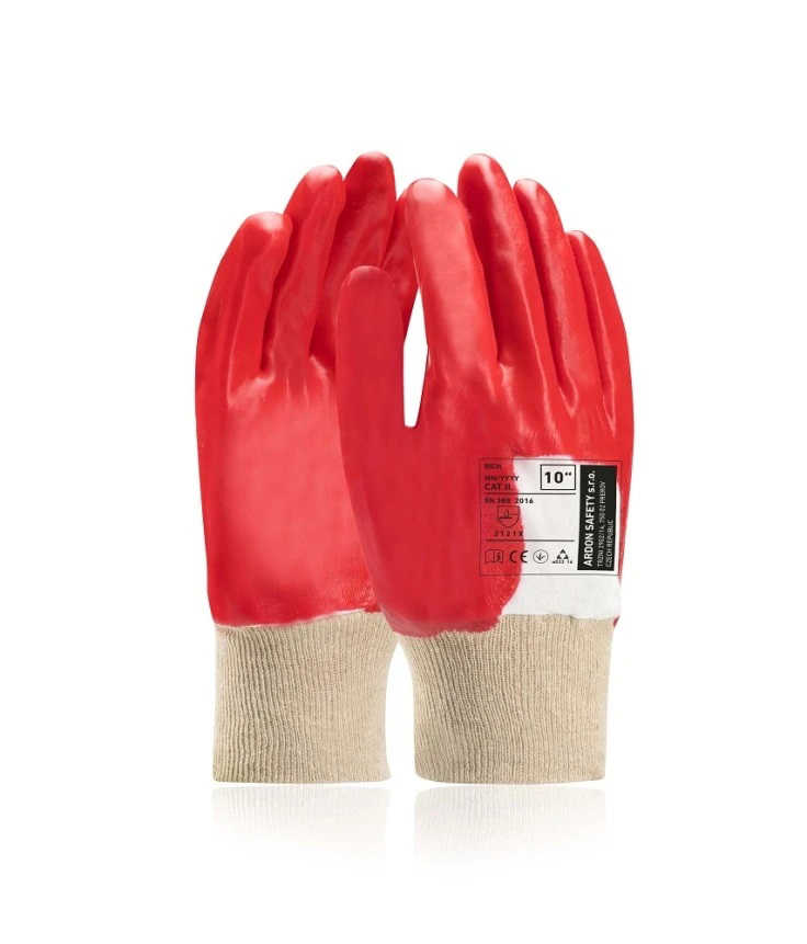 Popis: šitý bavlněný úplet polomáčený v PVC, pružný náplet na zápěstí
