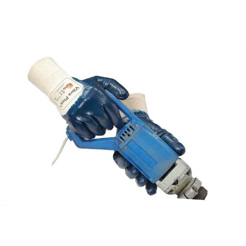 Popis: bavlněný úplet, celomáčený v modrém nitrilu, antivibrační vložka GELFORM**Vložka GELFORM snižuje nebezpečí vzniku syndromu HAVS (Hand-Arm vibration syndrome), onemocnění ruky, paže, která vzniká dlouhodobým působením vibrací při práci s vibrujícími nástroji a způsobuje znecitlivění a brnění části rukou a poškození nervů. Onemocnění je bolestivé a postihuje prsty, ruce a paže.