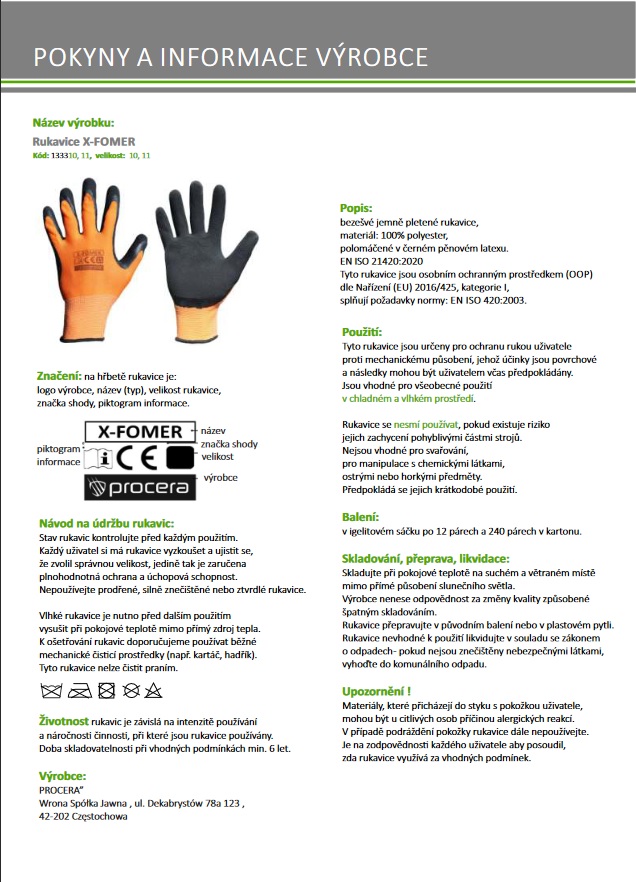 Rukavice X-FOMER z oranžového polyesterového úpletu, v oblasti úchopu potažené latexovou pěnou s hrubou strukturou. Ideální pro manuální práci. Velmi dobrý pocit z drženého předmětu. Velmi dobrá obratnost a přilnavost s vysokou odolností proti oděru. Dobře se přizpůsobí tvaru ruky. Pružné a pružné. Ukončeno lemem.