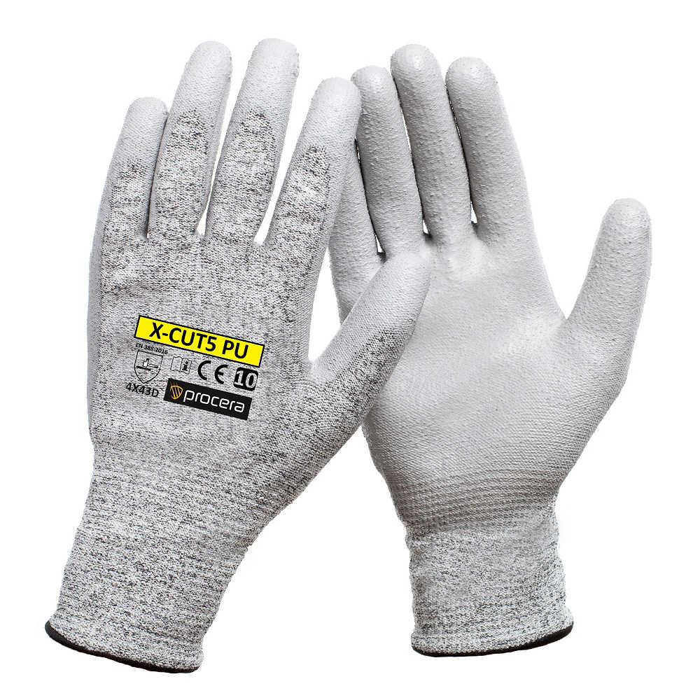 Popis: Rukavice X-CUT5 vyrobené ze směsi vláken HPPE a skleněných vláken s vysokým stupněm odolnosti proti proříznutí, potažené polyuretanem. Ideální pro manuální práci. Velmi dobrý pocit z drženého objektu. Chrání před ostrými předměty. Odolnost proti oděru, roztržení a propíchnutí. Dobře se přizpůsobí tvaru ruky. Ukončeno lemem. Vysoký pracovní komfort. CE EN 388:2003 4543, EN 388:2016 4X43D. Barva: šedá / šedá.Uvedená cena za 1 pár. Alternativní balení: karton 12/120. Záruka: 24 měsíců